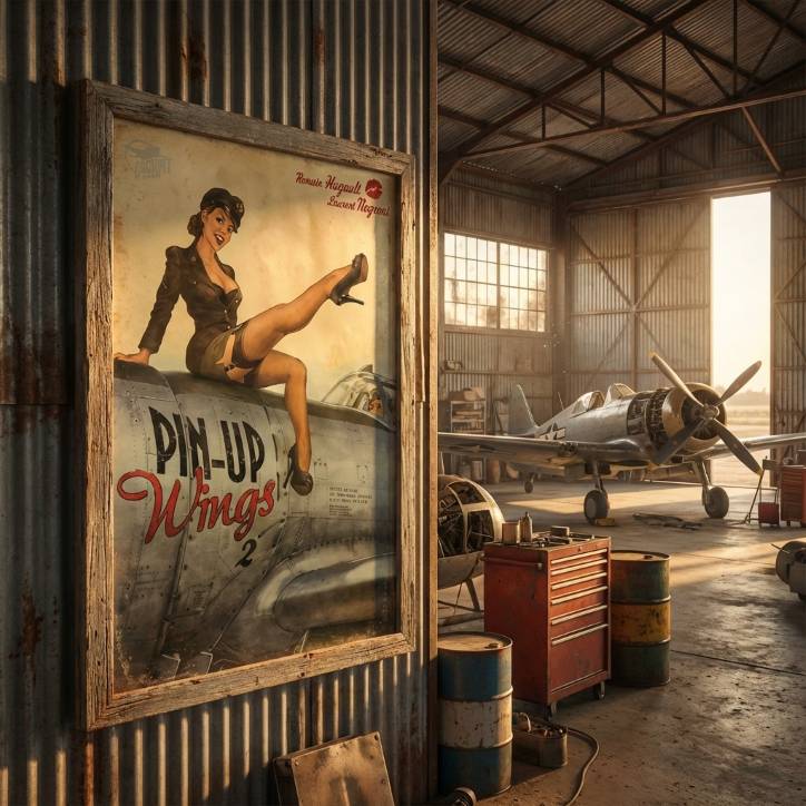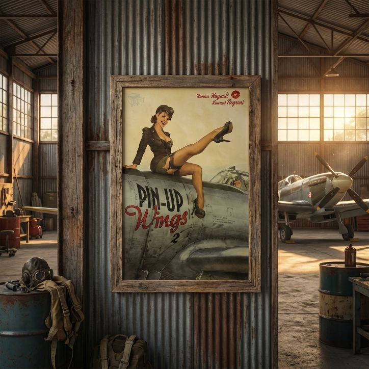 Affiche Vintage Pin-up "Wings" | Poster Rétro Nose Art Aviation 1940 L'Élégance Iconique des Années 40 dans votre Décoration Replongez dans l'âge d'or de l'aviation...