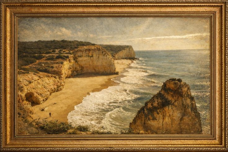 Algarve Portugal Beach Painting – Cliffs and Sea Decorative Canvas | Fine Art France Immerse yourself in the natural beauty of the Portuguese coastline with this...