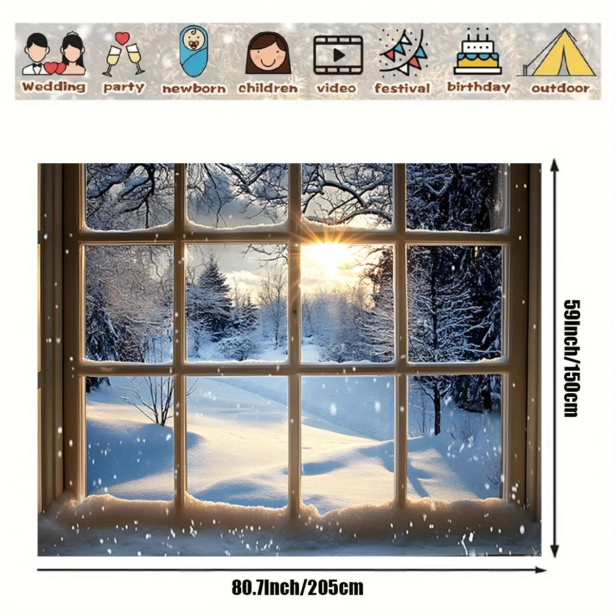 High Definition Decorative Canvas: Window View of Snowy Mountain Landscape